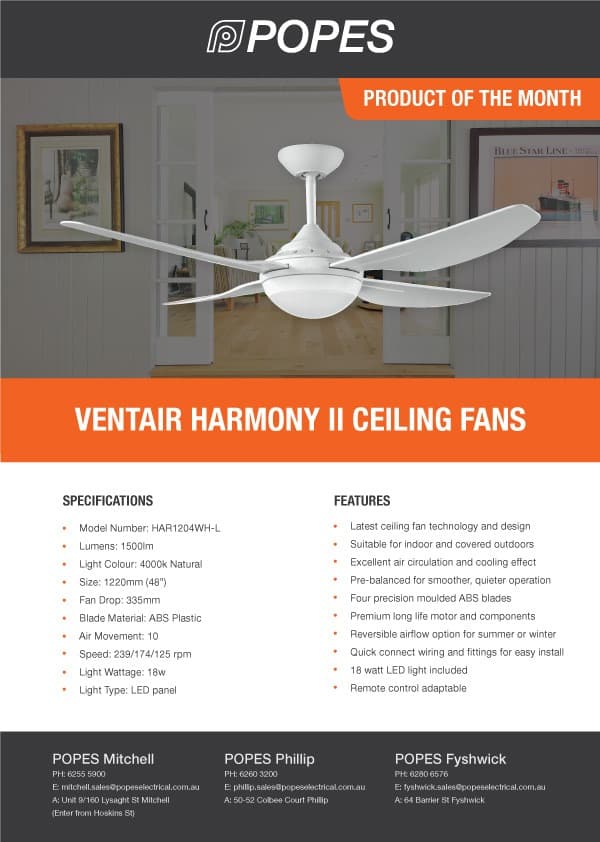 The Product of the Month for October is the Ventair Harmony II Ceiling Fan. Watch the following video to find out more.
