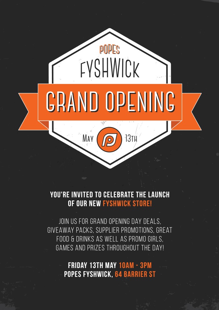 Come and celebrate the POPES Fyshwick store Grand Opening! Join us on Friday 13th May for grand opening day deals, giveaway packs, supplier promotions, great food and drinks and promo girls throughout the day! Try your hand at the mechanical bull or horizontal bungee and win yourself some great prizes – it’s a day not to be missed!