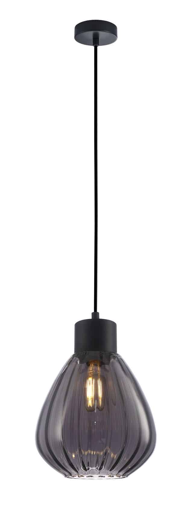 CLA PENDANT ES 72W BLK Smoke Wine Glass Ribbed OD200mm x H200mm | TULIP2