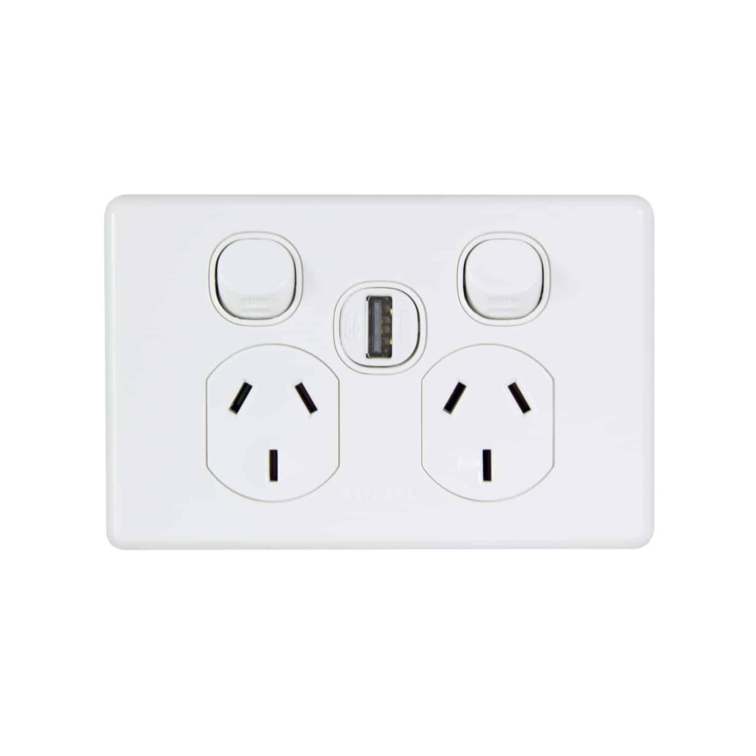Clipsal Classic C2000 Double GPO Power Point Single USB Charger Horizontal 10A White Electric | C2025USBC-WE