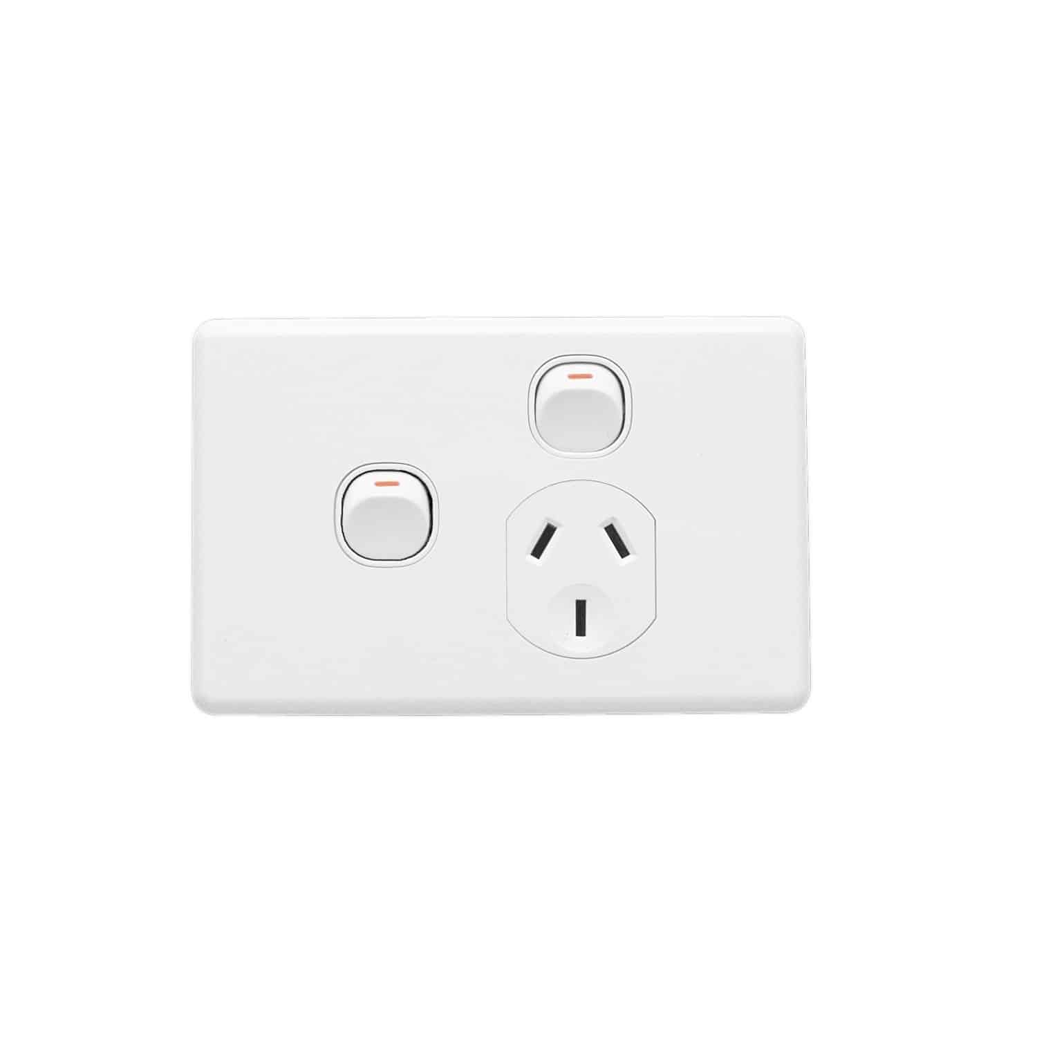 Socket Outlet C2000 – Single switched – Assembled – Horizontal – Optional extra switch – 250 V – 10 A – White Electric