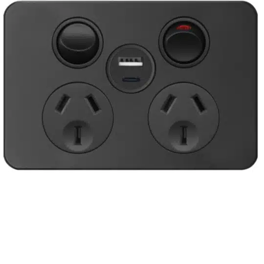 Hager Finesse Double GPO Power Point Horizontal 10A With USB A+C Matt Black | WBQP2USBAC-MB