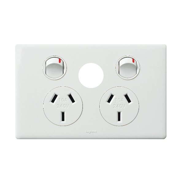 Legrand Excel Life Double GPO Power Point With Extra Function Hole Horizontal 10A White | ED777XWE
