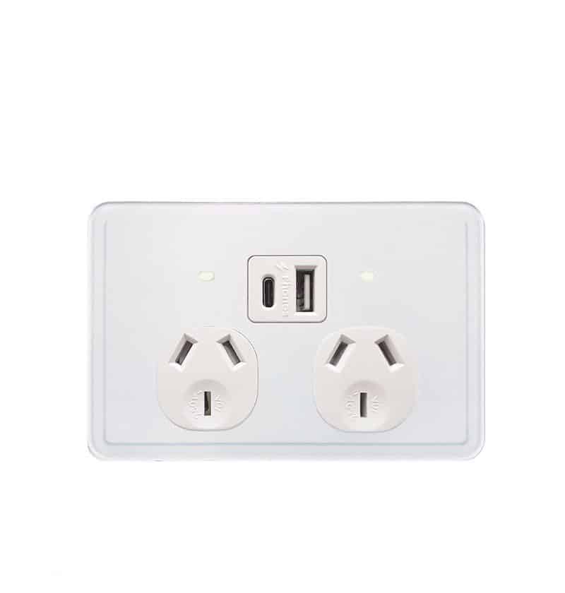 Trader Senoa Simple Double GPO Power Point Horizontal 10A With USB A+C White | SENPP2USBAU