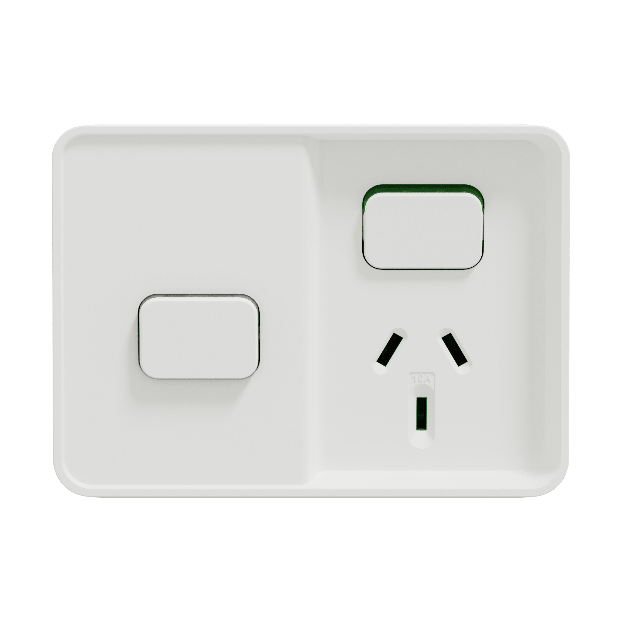 Clipsal Iconic Outdoor, Single, Switched socket outlet, with timer, 10A, 250V, Extra White