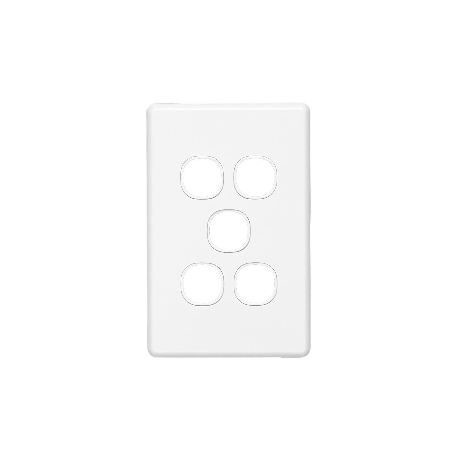 Cover Switch C2000 – Assembled – 5-gang – White Electric Switch cover. C2000 grid and cover plate are included. Suitable for 5-gang installations. Clipsal C2000. Colour: White Electric