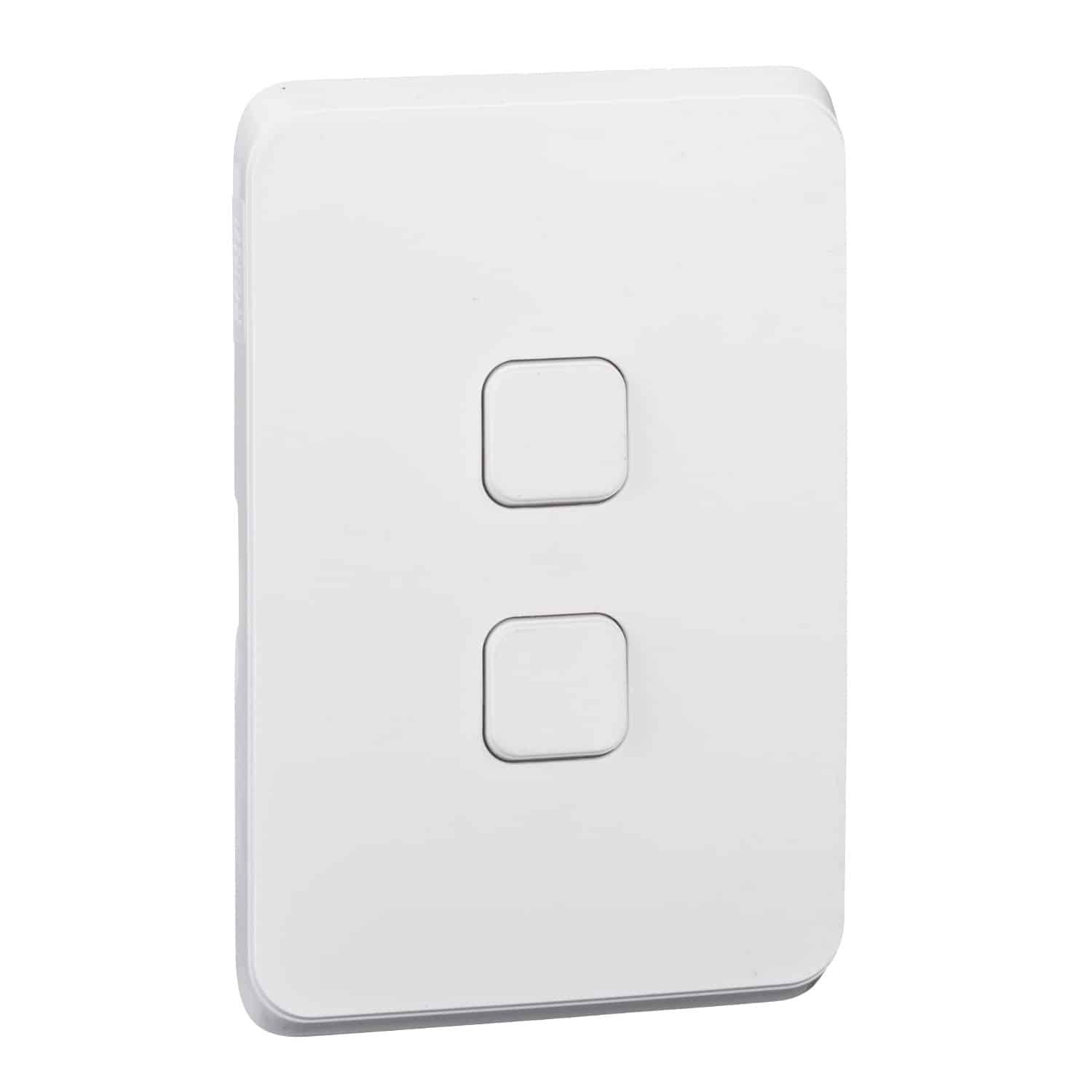 Clipsal Iconic – Skin Switch Vertical/Horizontal 2 Gang Rocker Decorative clip-on skin. Used with switches. Suitable for 2-gang installations. Clipsal Iconic. Colour – Vivid White with Solid Edge